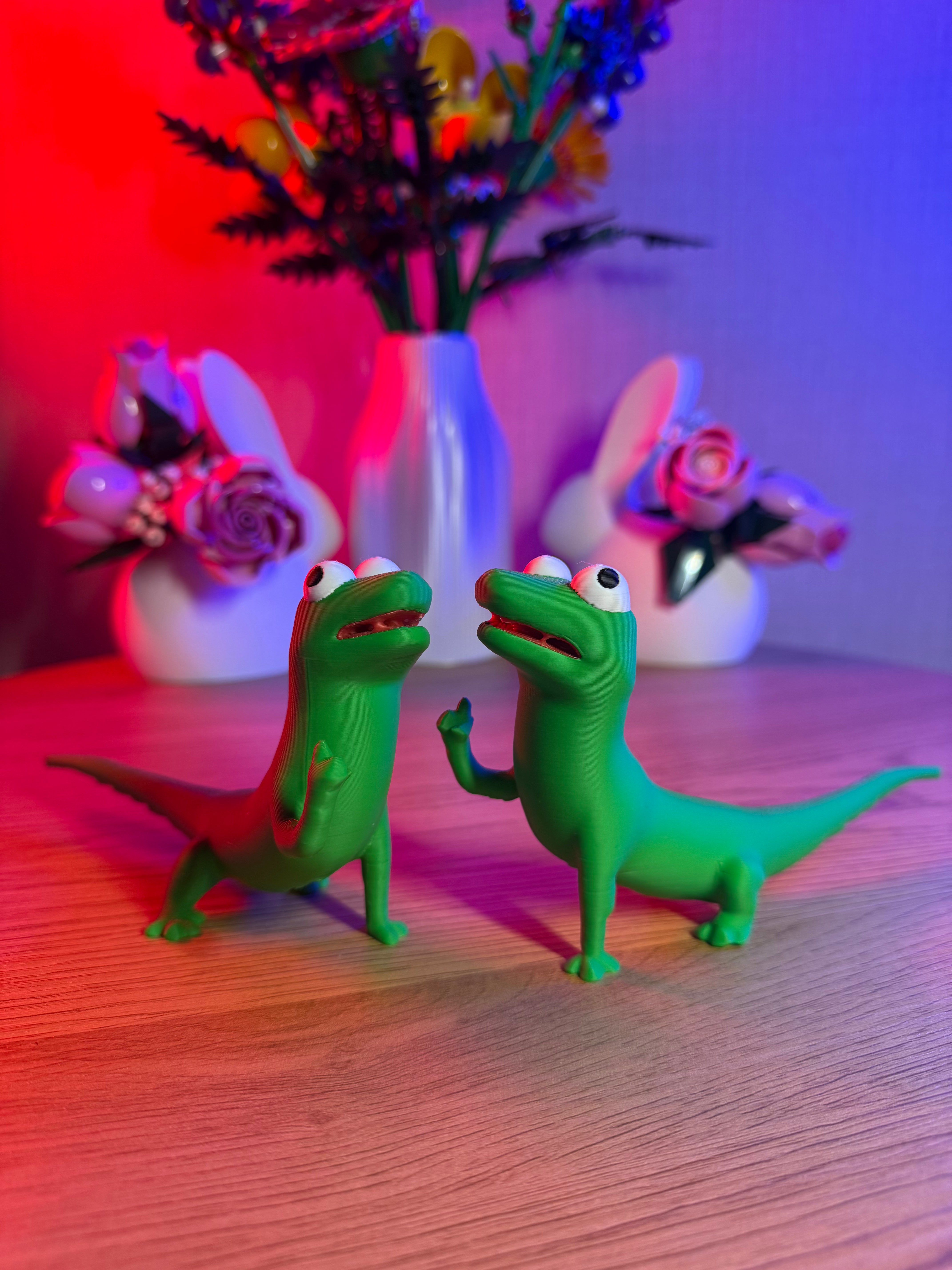 Зелені ящірки з мультфільму "Хопер" це чарівне поєднання гумору, харизми та сучасної естетики. Пара зворушливих зелених ящірок у виразних позах створює динамічну та життєрадісну композицію, яка додає легкості будь-якому простору, чи то робочий стіл, книжкова поличка або креативна студія.